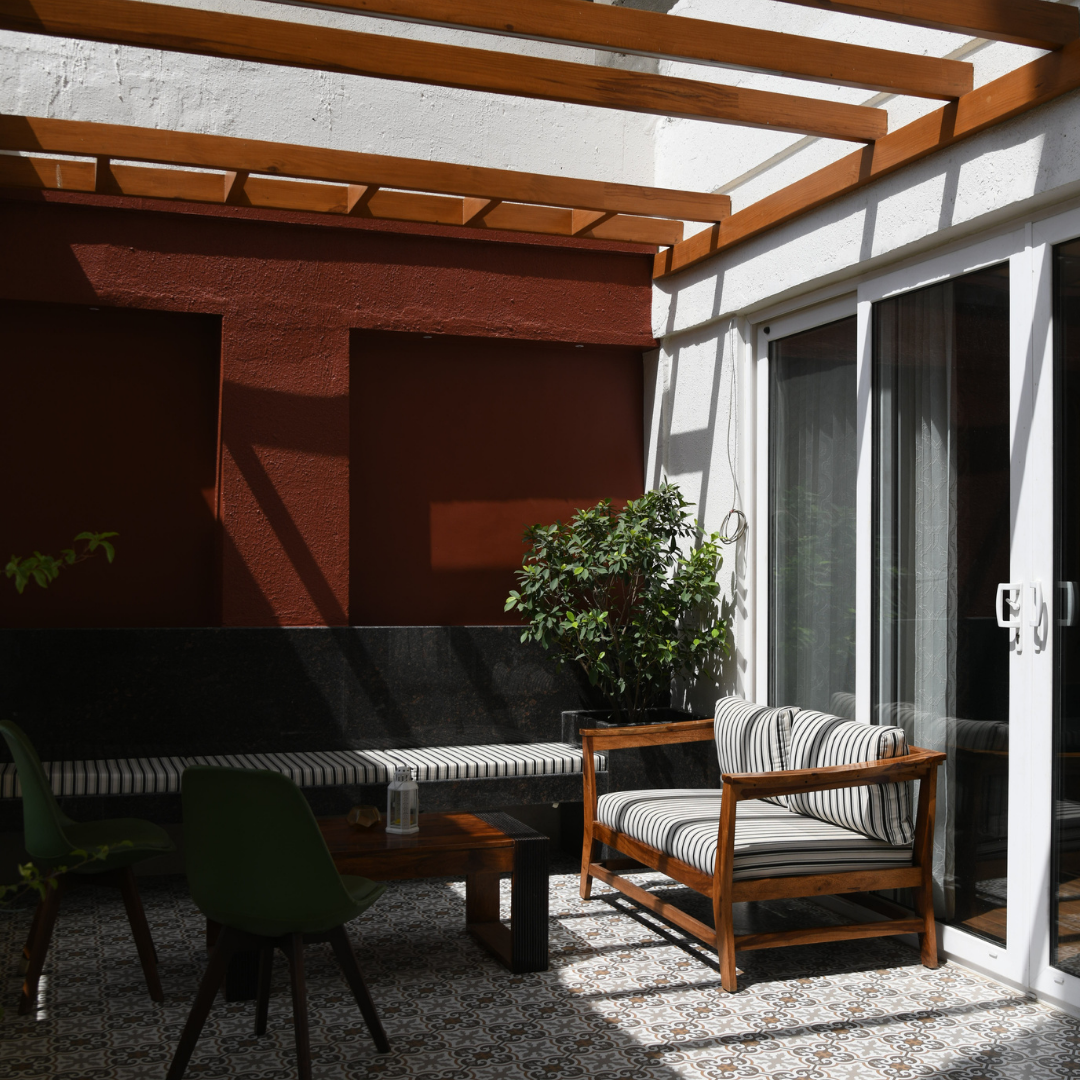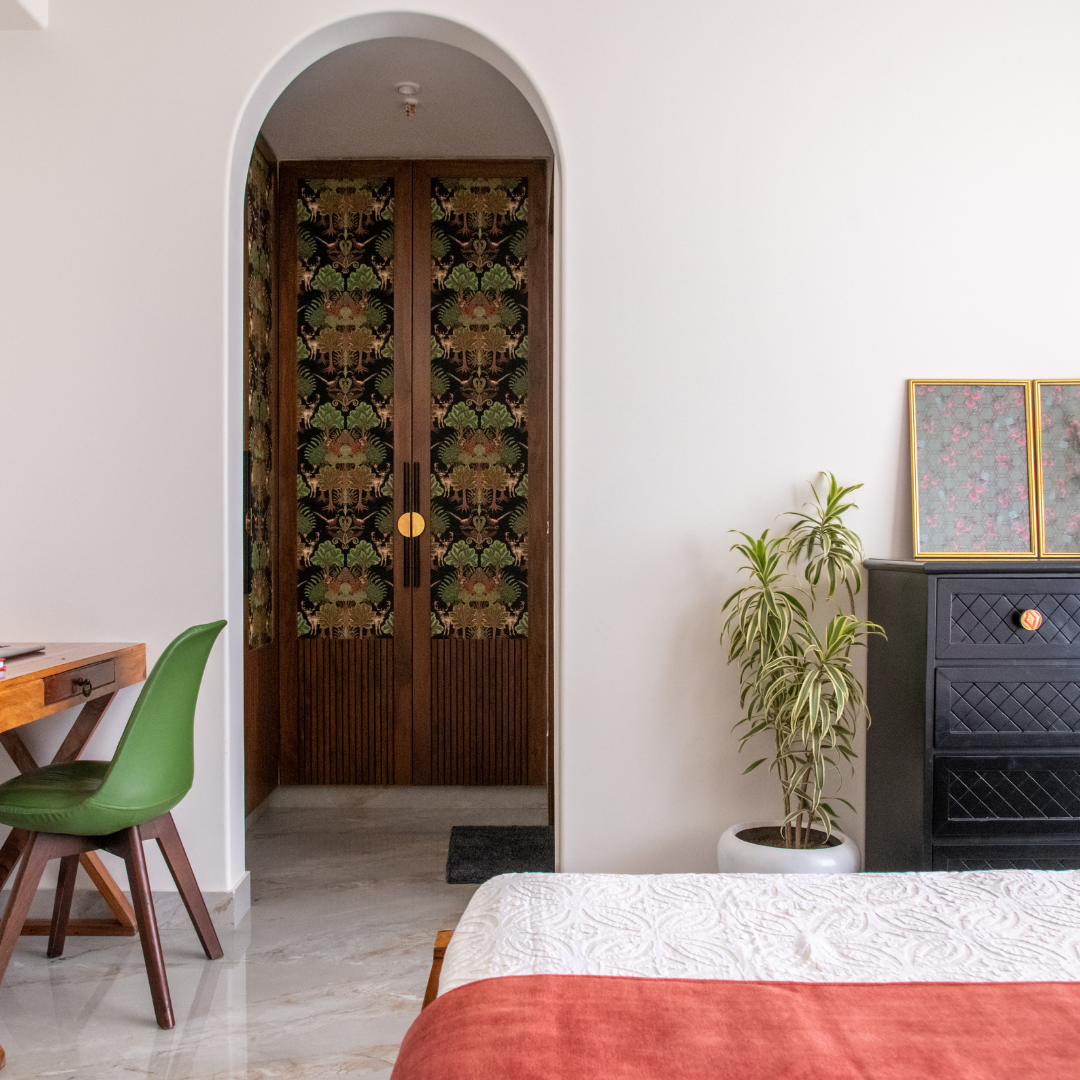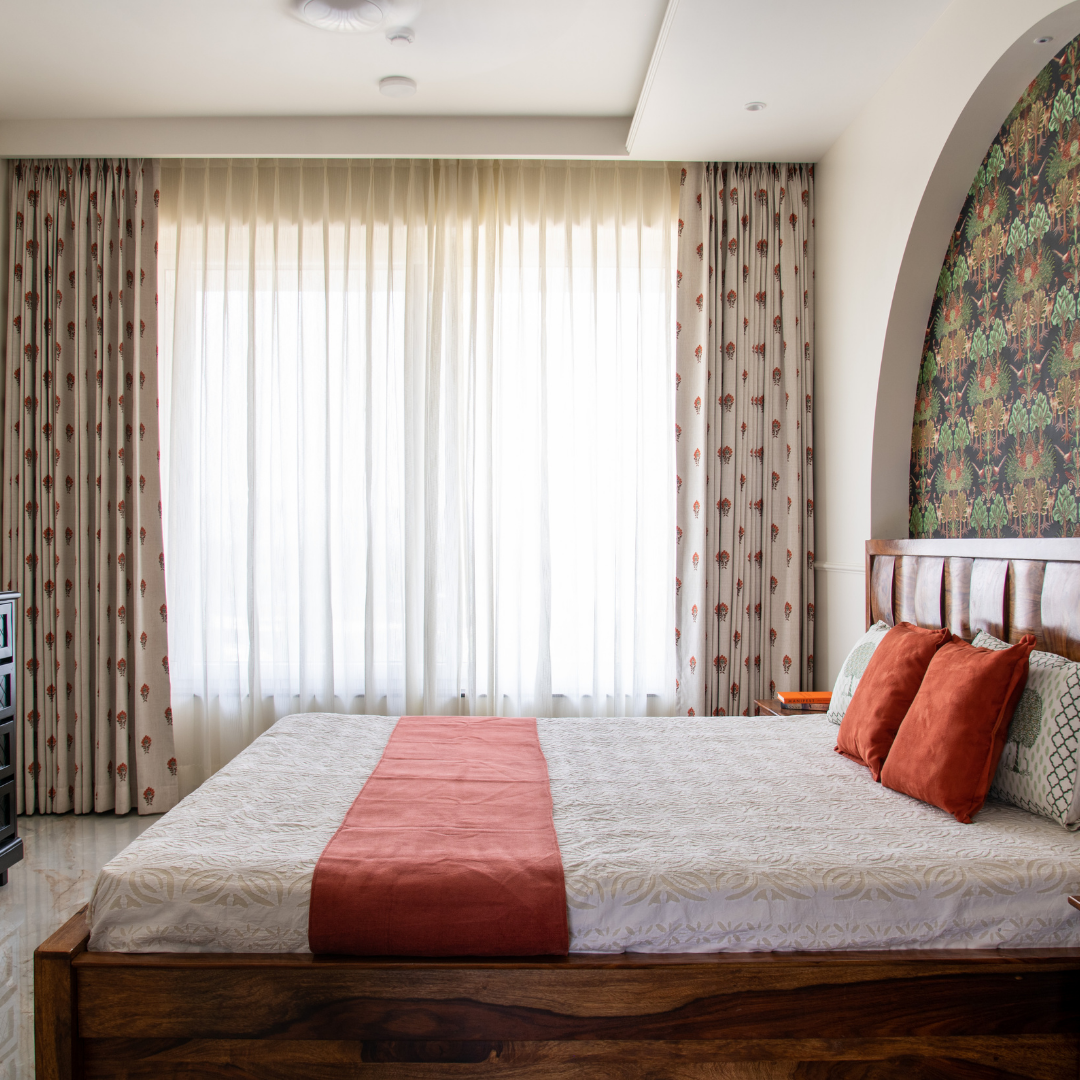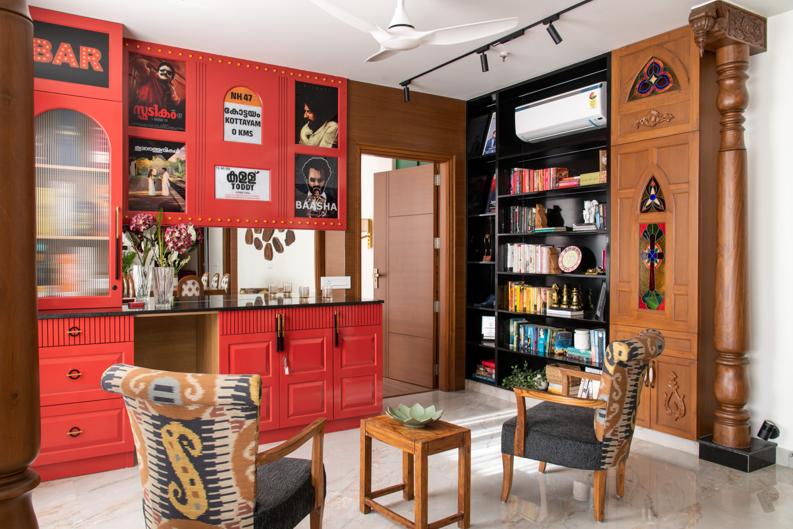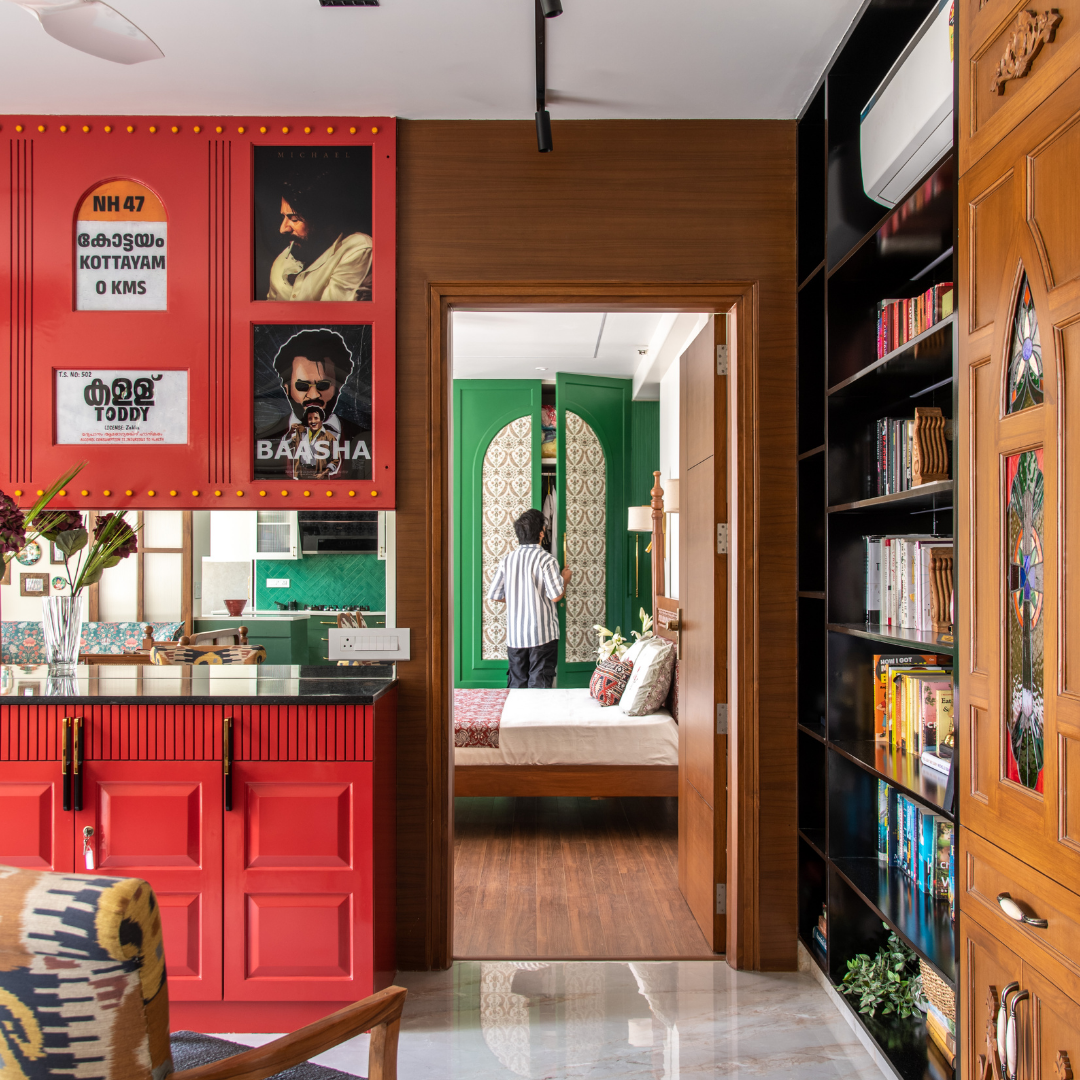 This 4BHK, 3600 sq. ft. home beautifully blends Kerala’s warmth and heritage with the modern sensibilities of urban Noida living. Designed for a couple from Kerala and their young daughter, the space reflects their deep-rooted cultural identity through teak wood furniture, vibrant colors, and handcrafted details. Traditional elements like wooden corbels, arches, and Athangudi-inspired tiles pair seamlessly with contemporary openness and functionality. Each room tells a story—from the airy, pillar-accented living space and green-detailed master bedroom to the cheerful, creative daughter’s room. With its harmonious mix of nostalgia, craftsmanship, and comfort, this home is a timeless celebration of Kerala’s charm reimagined for modern living.